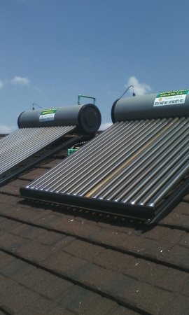 Aquasun solar water heaters absorb suns energy and convert it to usable heat to heat water. Water flows into the solar system by means of gravity however a pump can be used to sufficiently feed the solar system. Water is heated directly flowing into the tubes and back into the hot storage cylinder tank from where it's feed to point where hot water is needed. A controller is also used to operate the immersion heater which is used as backup system when there is no enough sun/ during cloudy days. The controller also operates the pump whenever it's used to pump water into the solar system.